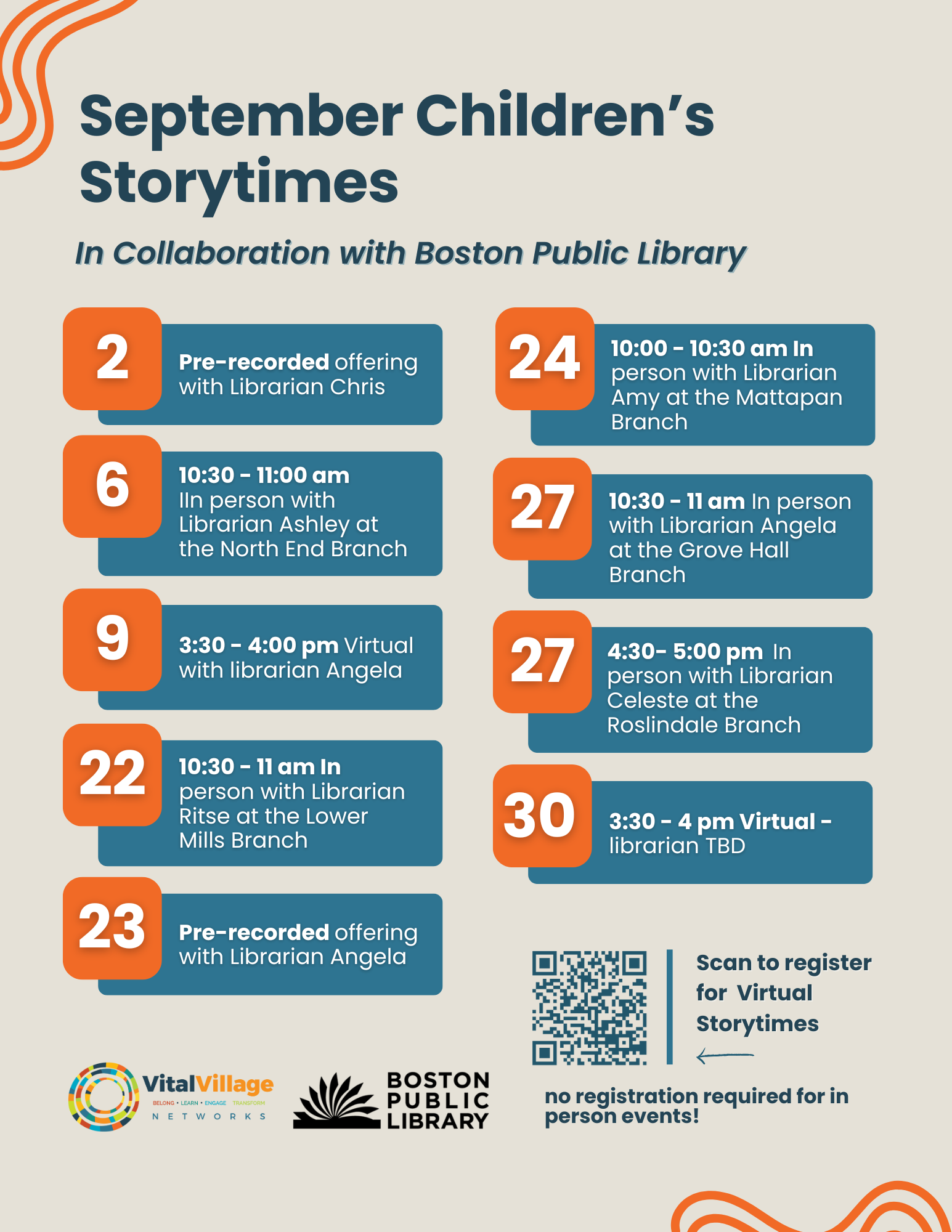 Virtual Children's Mental Health Story Time with Librarian Angela from the Grove Hall branch of the Boston Public Library. Thursday, October 9th at 3:30 pm on Zoom - register here.