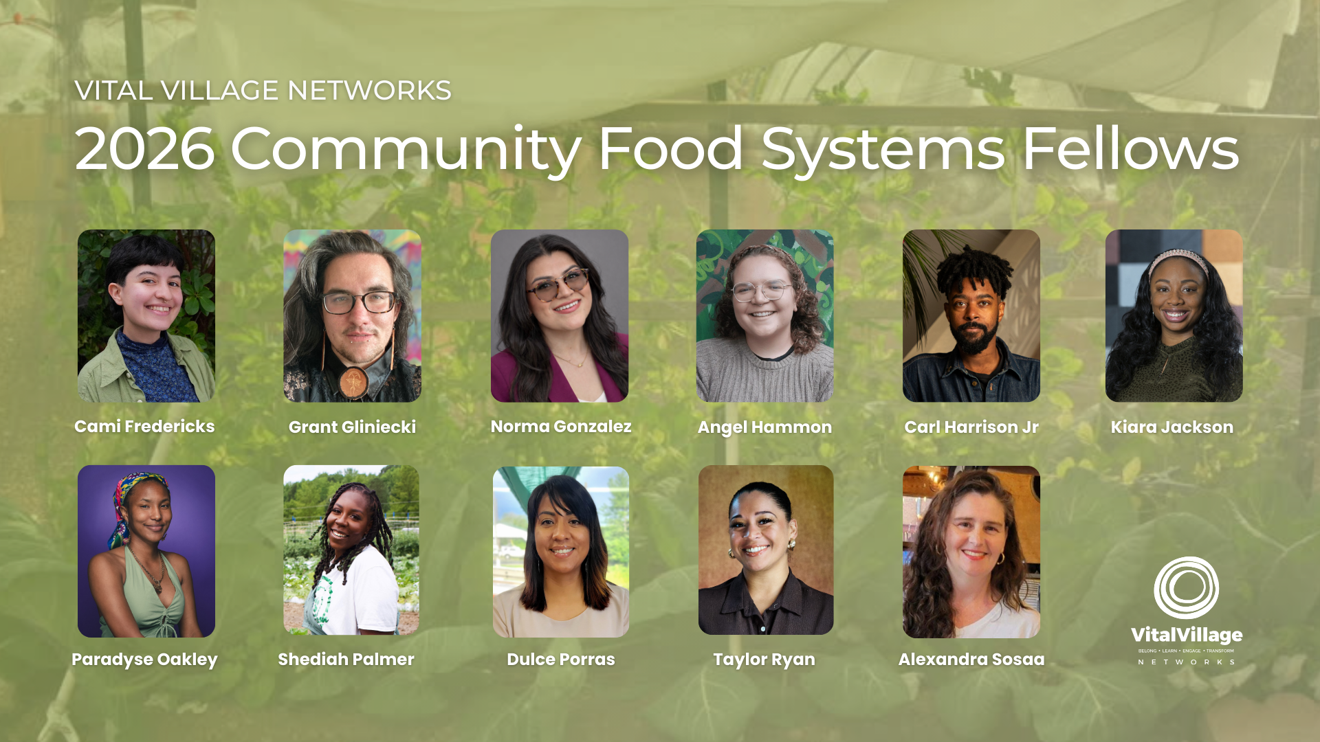 Vital Village Networks is thrilled to announce the eleven local leaders that have been selected to participate in the 2026 Community Food Systems Fellowship program. 2026 fellows include: